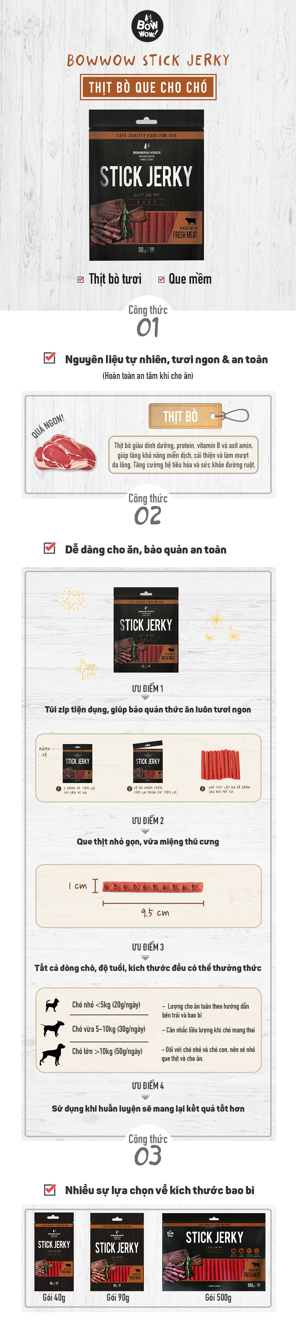 Thịt bò, Thịt cá, Bột đậu nành, Bột mì, Đường, Sorbitol, Gluten lúa mì, Bột hương liệu thịt bò, Chất nhũ hoá, Muối tinh, Chất điều chỉnh độ axit, Potassium Sorbate, Vitamin và khoáng chất, Màu thực phẩm.