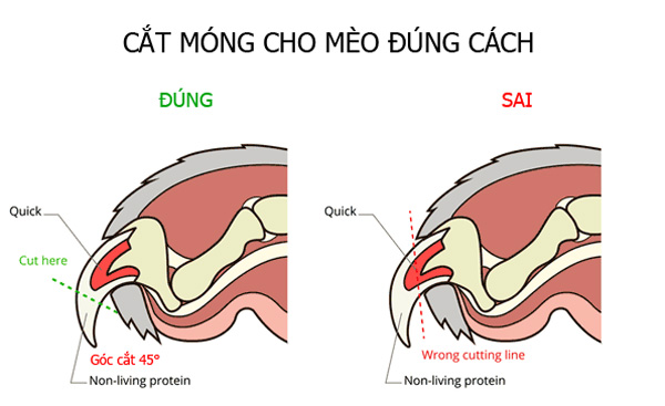 - Mèo thường có tâm lý cảnh giác và phản ứng tự vệ mỗi khi cảm thấy bị tấn công. Vì vậy bạn đừng đột ngột tiến hành cắt móng cho mèo mà chưa có sự chuẩn bị tâm lý cho bé mèo trước khi cắt nhé.