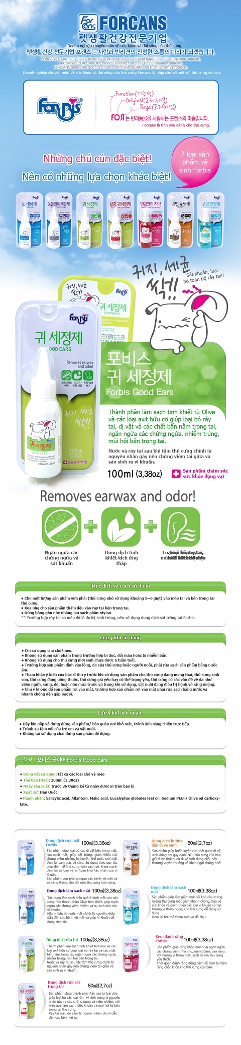 Thành phần làm sạch tinh khiết từ Olive và các loại axit hữu cơ giúp loại bỏ ráy tai, dị vật và các chất bẩn nằm trong tai; ngăn ngừa các chứng ngứa, nhiễm trùng và mùi hôi bên trong tai.