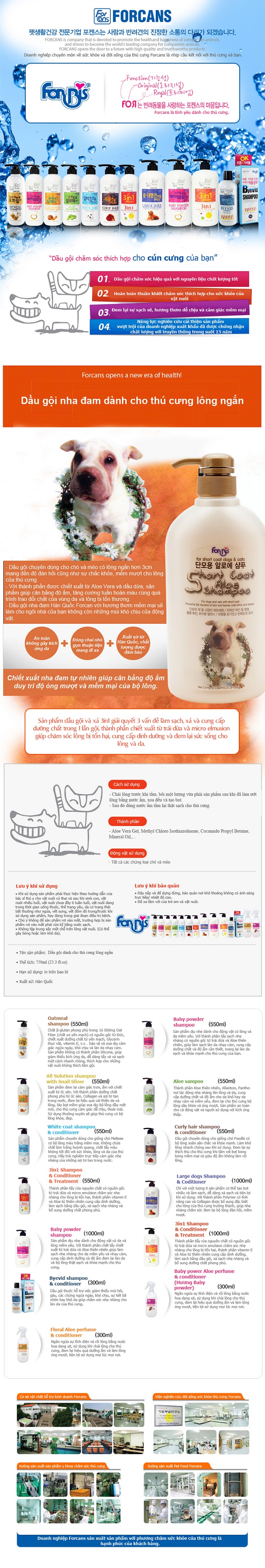 Dầu gội nha đam dành cho thú cưng lông ngắn.