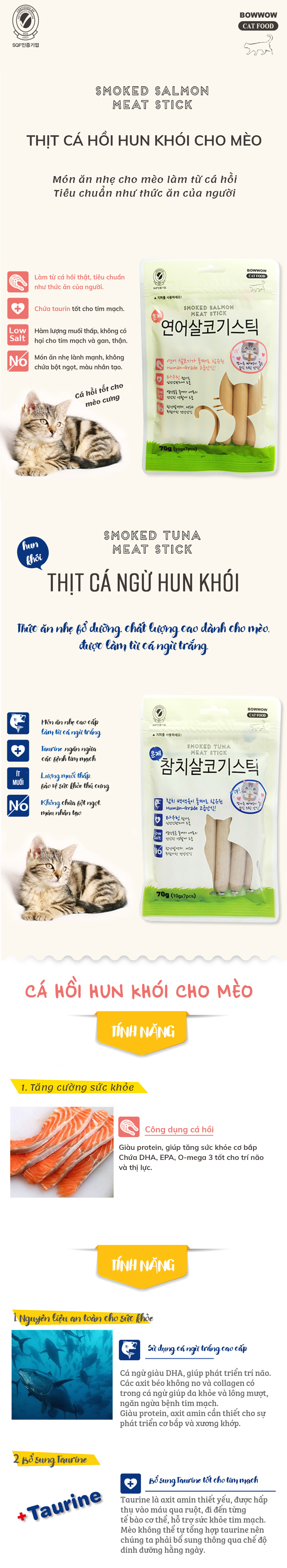 Ức gà, cá hồi, Đường, Tinh bột, Taurine, Dầu Chicken breast, Salmon, Sugar, Starch, Taurine, Dầu hạt cải, Protein đậu nành, Guar gum, Muối tinh luyện, Hương xông khói, Nước tinh khiết.