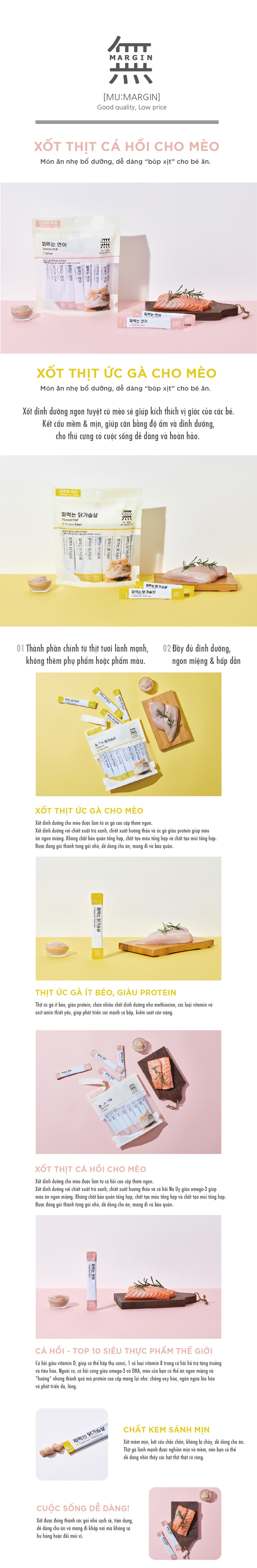 Xốt thịt thật cho mèo Mumargin là bánh thưởng phù hợp cho việc vui chơi và huấn luyện mèo, với nhiều ưu điểm nổi bật: