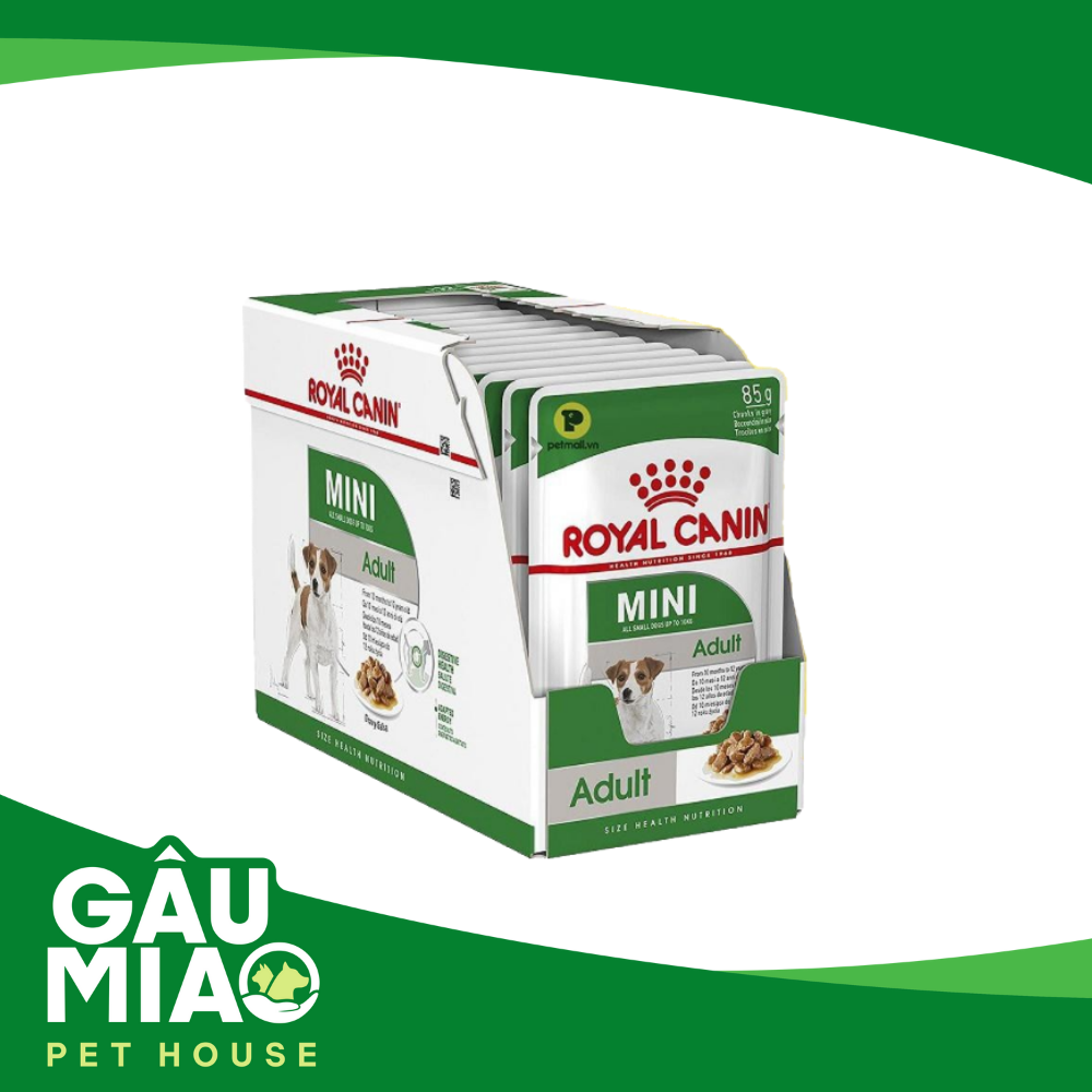 Pate cho chó Royal Canin Mini Adult 85gr là loại thức ăn ướt đóng túi dành riêng cho dòng chó có trọng lượng từ 4-10kg khi trưởng thành, và trên 10 tháng.
